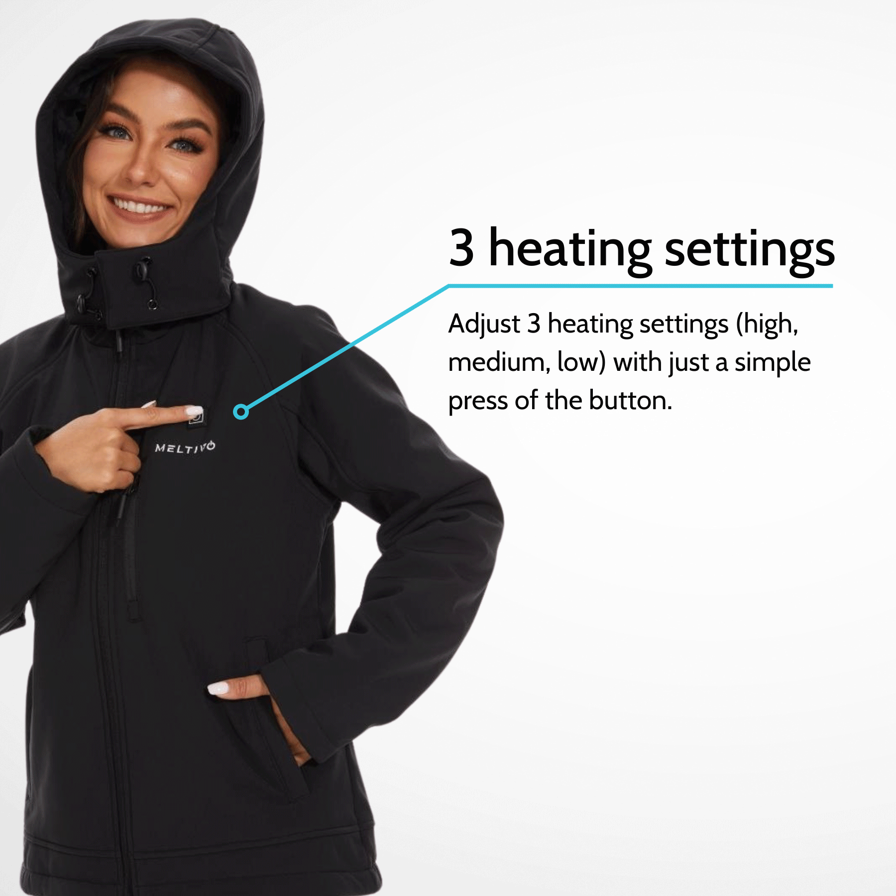 WATER & WIND RESISTANT: Defy the elements and conquer the outdoors! Our MELTIVO Heated Jacket is engineered to keep you dry and shielded from gusty winds, so you can explore the world without limits.